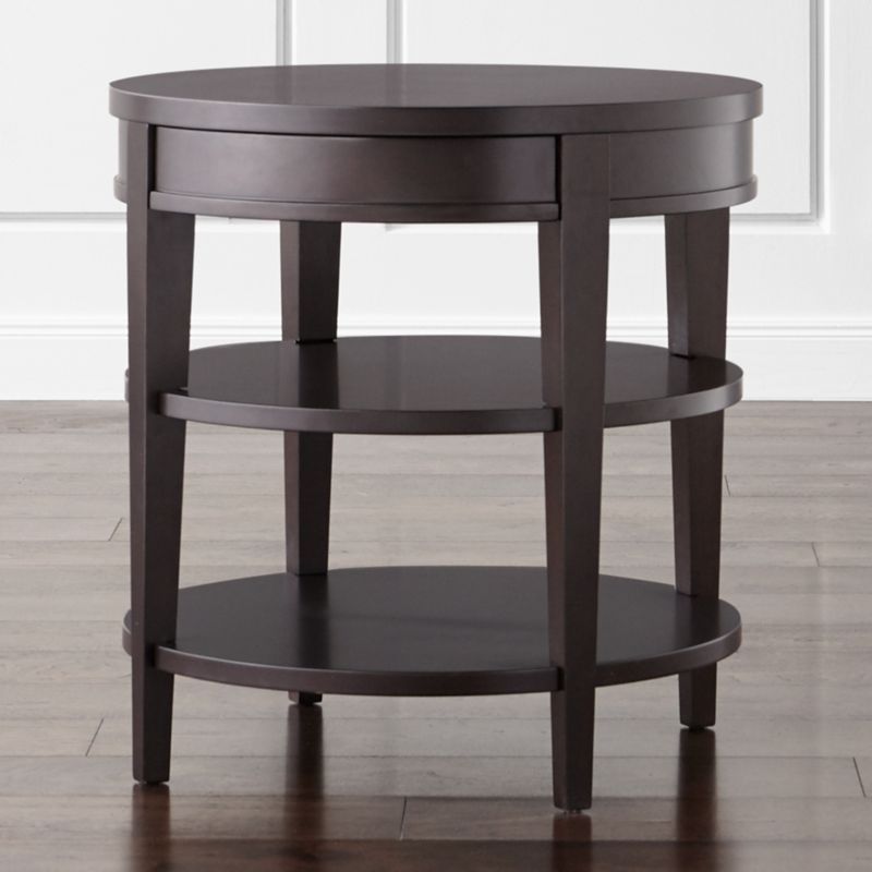 Bay Shore Collection 30" Round Coffee Table with Lower ... from c.shld.net Add to compare compare now. Three tier table, round, end table, shelf, stand, black, to snack table, made in italy add a new end table or side table in your living room for holding drinks or displaying your favorite photos and home accents, in the den for books and magazines, in the bathroom for toiletries and extra towels, or in the bedroom for your alarm clock, books, and table lamp. This round end table has plenty of room for a few books or an accent lamp up top, while a lower shelf displays a petite succulent or holds a basket for your remotes. Winado set of 2 nightstand mdf end tables with shelf drawer,bedroom furniture (2x white) 15.8l x 11.8w x 19.7h. Rated 5 out of 5 stars. Features an espresso finish and flared legs for an elegant look. Get 5% in rewards with club o! Ample, spacious, smooth wooden oval top.